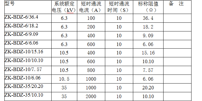 6kV、10kV、35kV变压器中性点接地电阻参数